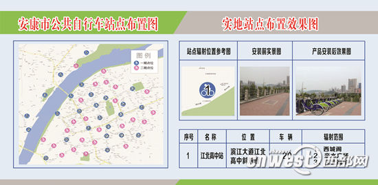 據悉,安康市是國家第三批自行車試點示范市,城區(qū)計劃共建設50個站點,累計投放1200輛自行車。整個工程分兩期建設,前期建設25個站點,投放600輛自行車;擴容項目根據運行需要,再增設25個站點,投放600輛自行車。