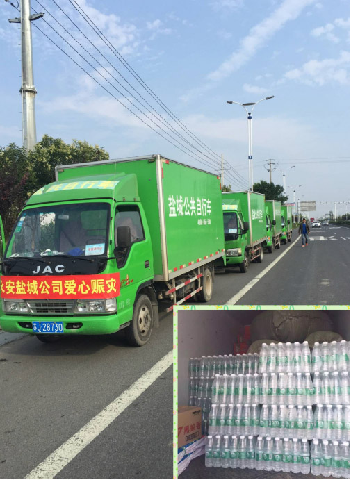 在天災(zāi)面前,我們顯得那么渺小和無(wú)力,在抗災(zāi)救災(zāi)時(shí),我們愛心力量大,我們一直與阜寧、射陽(yáng)同在。鹽城公共自行車中心發(fā)起愛心捐贈(zèng),用善款購(gòu)買了礦泉水、方便面、油布、被褥、床席、蚊香等救災(zāi)物資,送往災(zāi)區(qū),給受災(zāi)群眾送去溫暖,用實(shí)際行動(dòng)援助災(zāi)區(qū)的兄弟姐妹。