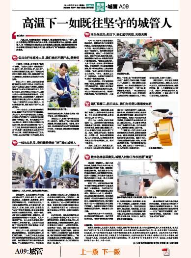 高溫的日子,是他們每年都要度過的一段時光。城管人工作之艱辛卻滿腔熱情,深為他們戰(zhàn)高溫,斗酷暑,堅守崗位,保質(zhì)保量地完成運(yùn)營調(diào)度維修維護(hù)任務(wù),不畏艱苦、勇?lián)厝蔚姆瞰I(xiàn)精神所感動。